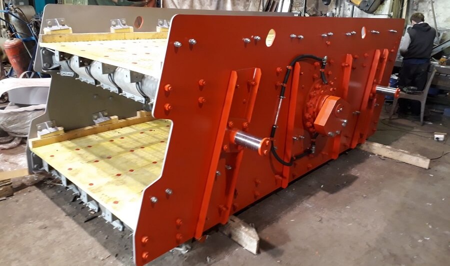 Грохот инерционный тяжелого типа ГИТ-42 предназначен для трех фракционного разделения материала, максимальный вес объемно-насыпной массы которого не превышает 2,8 т/м3, а максимальный размер куска достигает 400 мм.